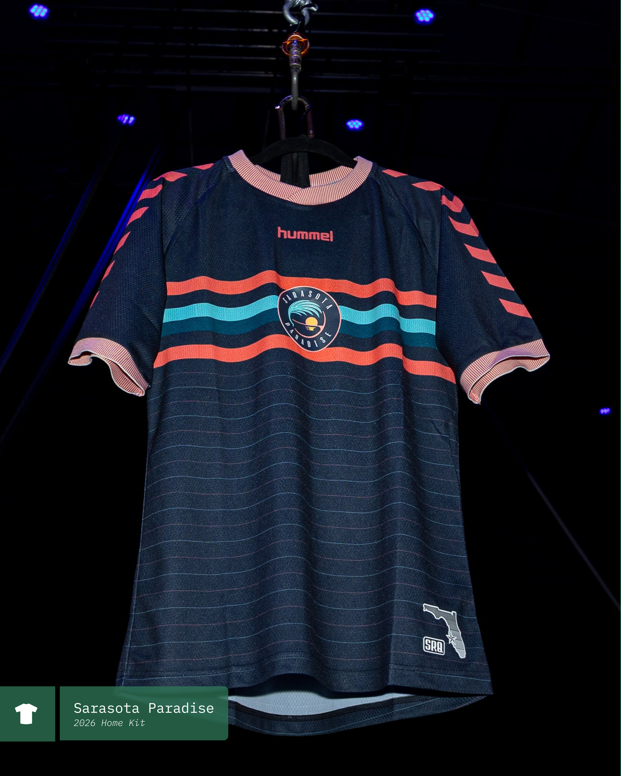 The Sarasota Paradise of USL League one have released their new 2026 Primary kit called "The Primetime Streak".